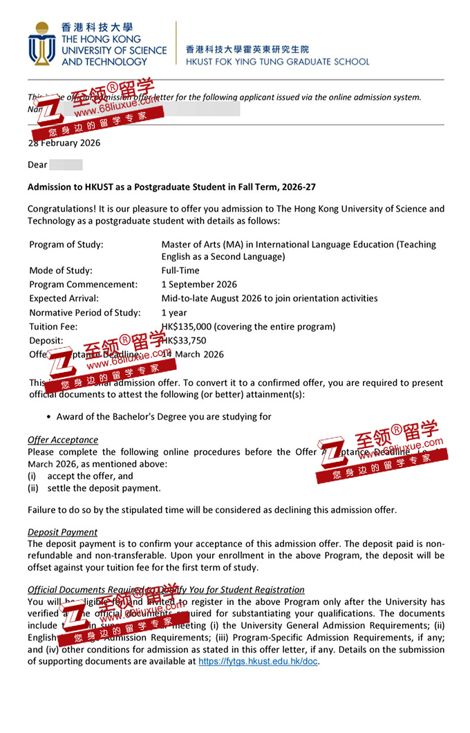 录取结果:香港科技大学国际语言教育硕士TESL录取