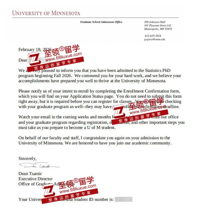 录取结果:明尼苏达大学,统计学PHD全奖+$43,052/年
